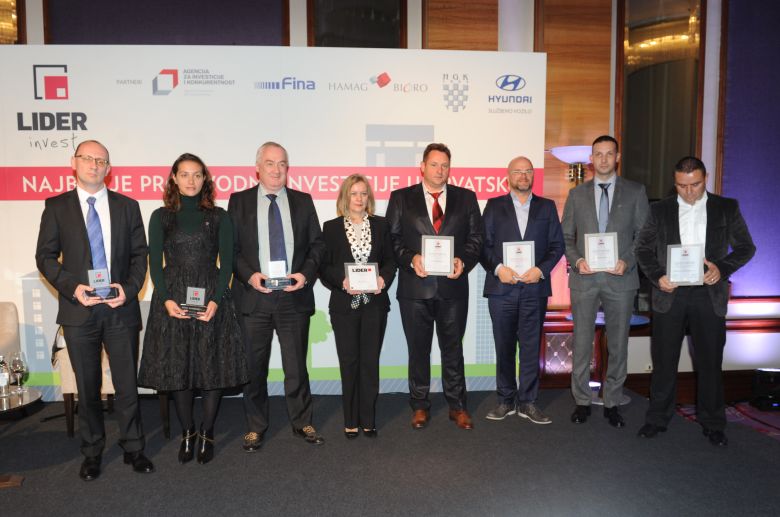 Nagradu ‘100 posto Lider invest’ za najbolju veliku proizvodnu investiciju dobila je tvrtka ACG Lukaps, i to za izgradnju zgrade od 20 000 četvornih metara, povećanje proizvodnih kapaciteta sa 7 na 10 milijardi kapsula za lijekove godišnje, nabava novih tehnologija i ulaganje u i istraživanje, vrijednu ukupno 262,5 milijuna kuna. Wollsdorf Components i Orada Adriatic dobile su nagradu Lider invest za najbolju srednju proizvodnju investiciju, a Rimac Automobili za najbolju malu proizvodnu investiciju.Priznanje Export Lider invest za investicije koje su najbiše doprinijele izvozu dobile su tvrtke TTO Thermotechnik i Ducati komponenti. Priznanje Employee Lider invest za investiciju koja je najviše pridonijela zapošljavanju dobila je tvrtka Wolldorf Components, priznanje ECO Lider invest za investiciju koja je najviše pridonijela održivom razvoju i kvaliteti života građana te zaštiti prostora i okoliša dobila je tvrtka Spin Valis Internacional, a posebno priznanje stručnog odbora Special Lider invest dodjeljeno je tvrtki Tabacco.